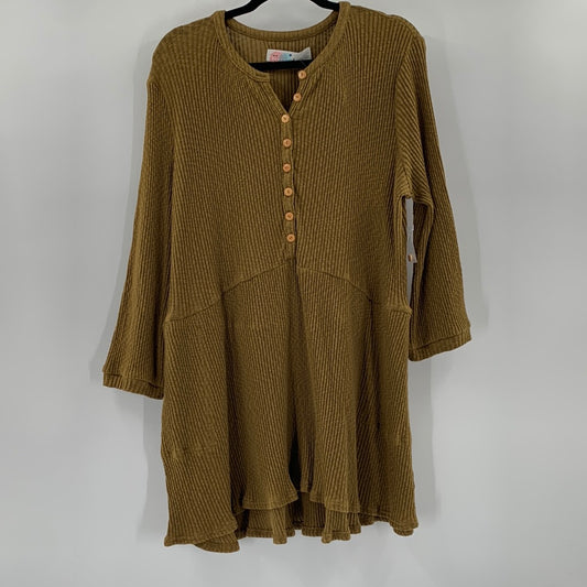 Free People Beach Long Sleeve Ribbed Knit Olive Green Midi Dress (Size XS)