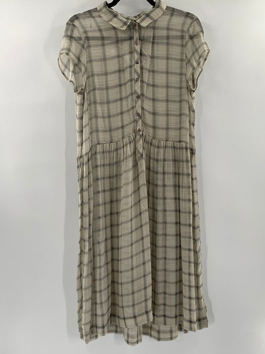 Cooperative - Front Button Up Flannel Patterned Pleated Midi Dress (Size Medium)