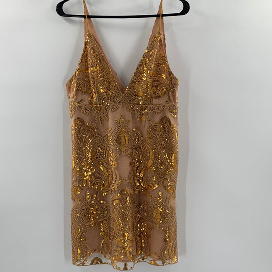 Free People Gold Sequin Lace Mini Dress (Sz4)