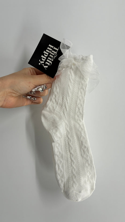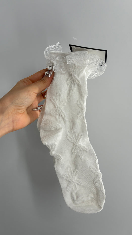 NWOT White Floral Textured and Patterned Ruffle Cuff Sock