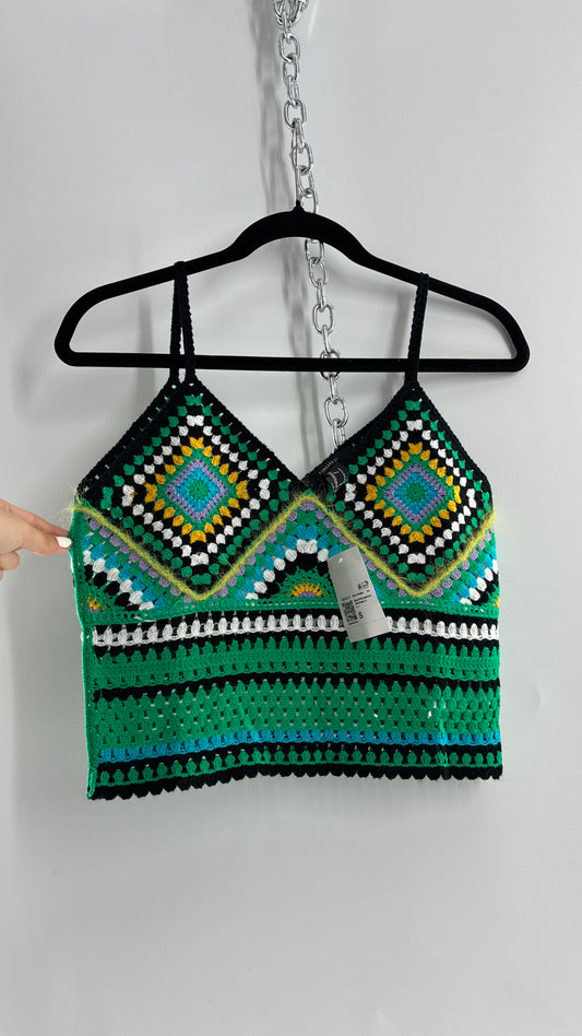 Vintage Crochet Knit Kelly Green Sleeveless Top with Tags Attached (Small)