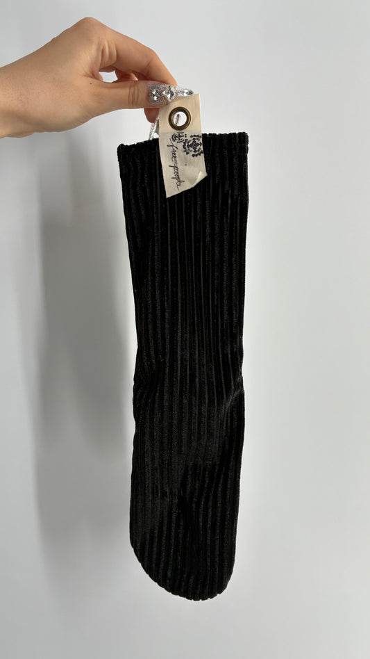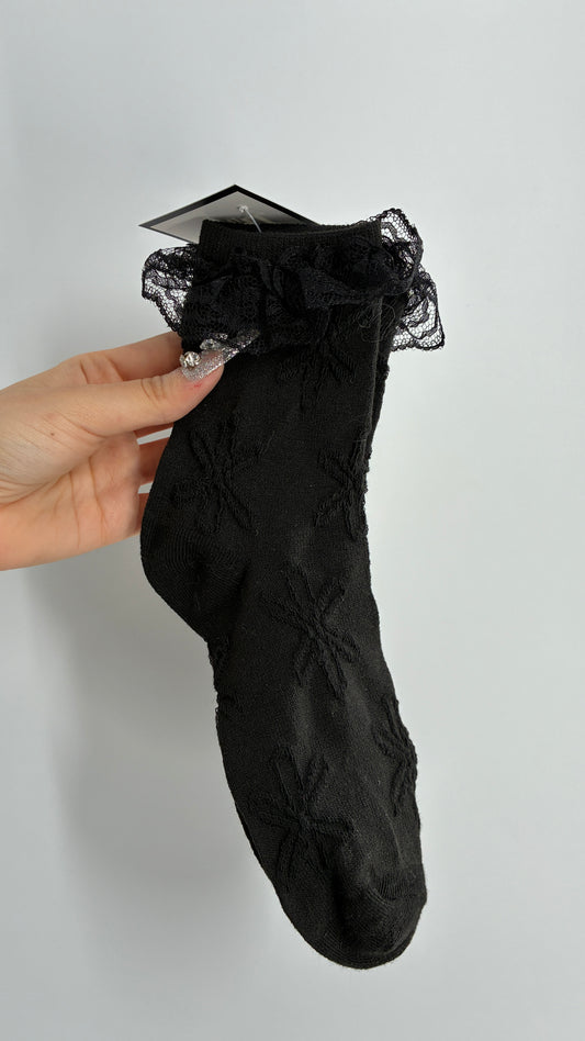 NWOT Black Floral Textured and Patterned Ruffle Cuff Sock
