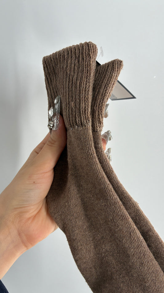 PromoçãoNWOT Thick Knit Brown Crew Sock