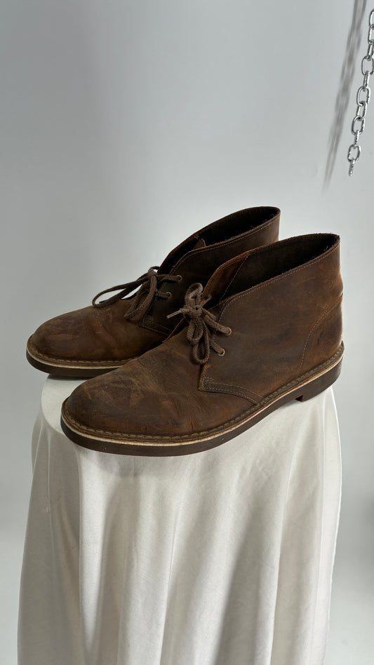 CLARKS Brown Leather Men’s Bushacre Chukka Boots (10.5)