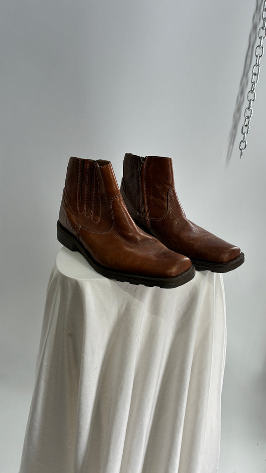 Vintage STEVE MADDEN Men’s Brown Leather Square Toe Chelsea Boot (9.5)