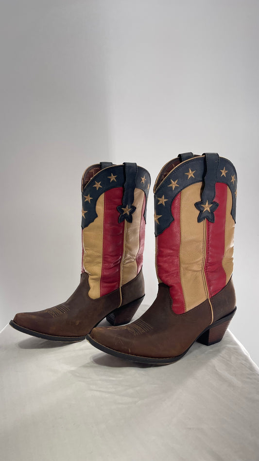 DURANGO Brown Leather Americana Flag Cowboy Boots (11)