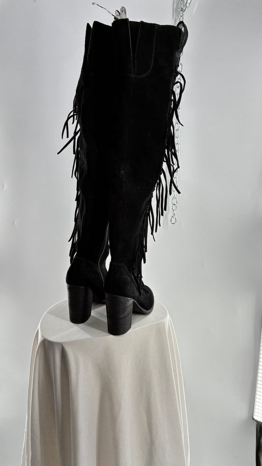 Vintage CARLOS SANTANA Genuine Suede Leather Thigh High Tassel, Fringe Side Boots (7.5)