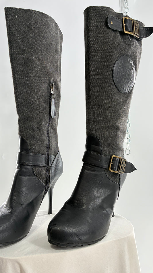 Vintage ED HARDY Stiletto Boots with Embossed Buckles and Badges (9)