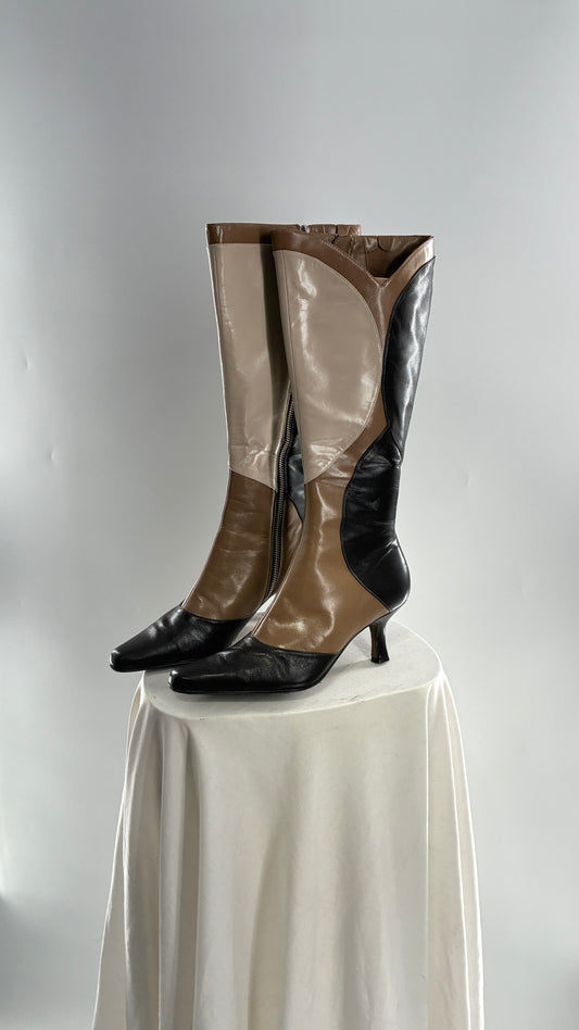 Vintage ANN MARINO Knee High Pointed Toe Abstract Patchwork Boots (6.5)