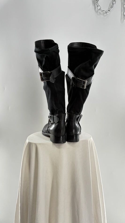 Vintage Cole Haan Black Leather Knee High Boots with Buckle Detailing (7.5)