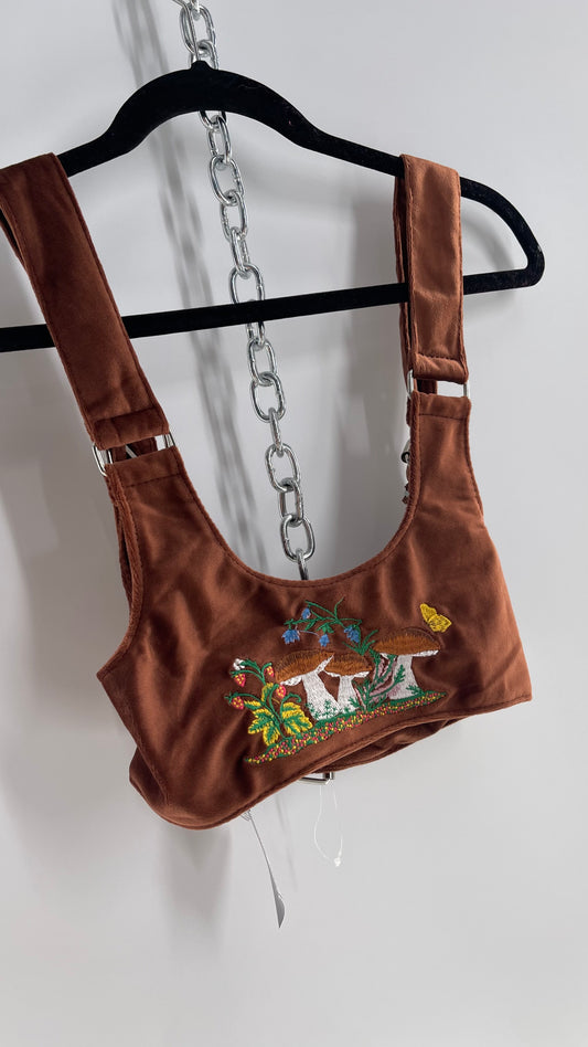 Urban Outfitters Brown Velour Harness with Embroidered Fairy/Mushrooms (Small)