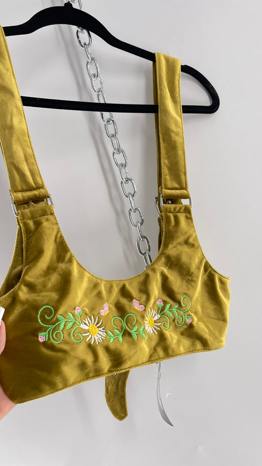 Urban Outfitters Greenish Gold Velour Body Harness with Embroidered Daisies and Butterflies (Large)