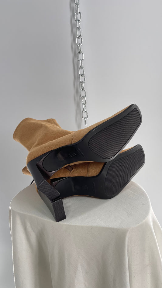 Vintage PREDICTIONS Tan Square Toe Block Heel Booties (6.5)