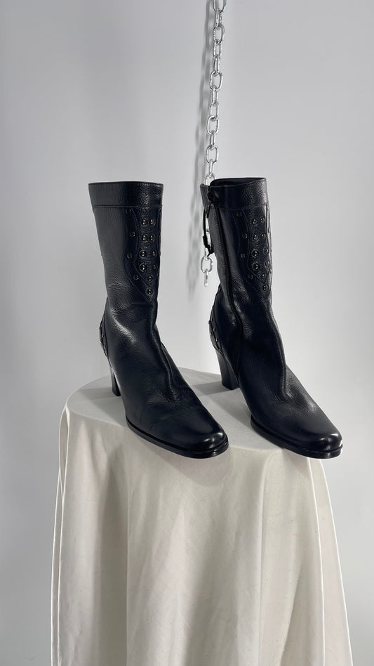 Vintage 1990s Via Spiga Black Leather Studded Booties (5.5)