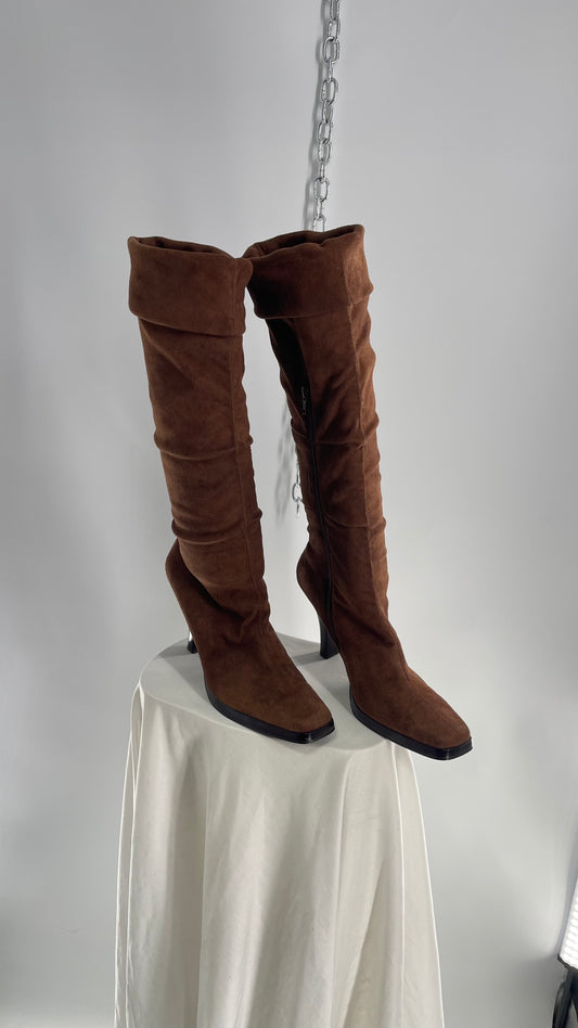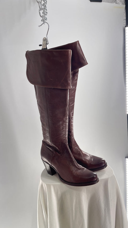 Vintage FRYE Brown Leather Fold Over Thigh High Round Toe Boots (8)