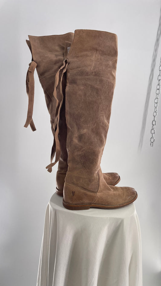 Frye Taupe Leather Over the Knee Fold Over Celia Boots (8)