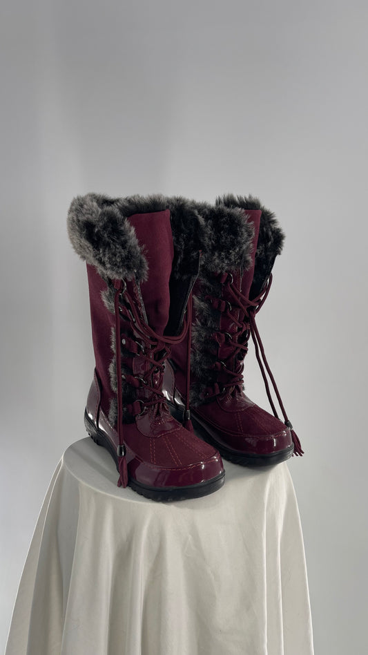 Vintage Sporto Raspberry Knee High Faux Fur Lined Boots (7)