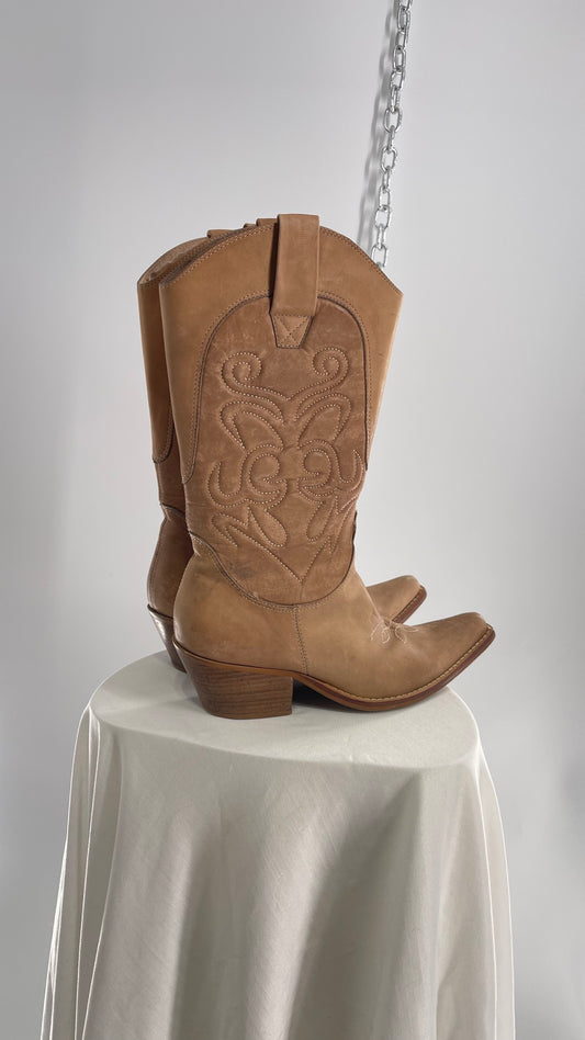 Vintage Xenny Penny Light Tan Embossed Cowboy Boots (9M)