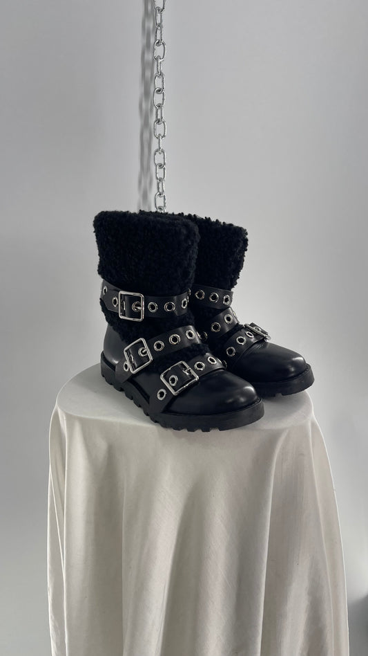 Marc by Marc Jacobs Black Strappy Buckle Sherpa Biker/Moto Boot(35.5)