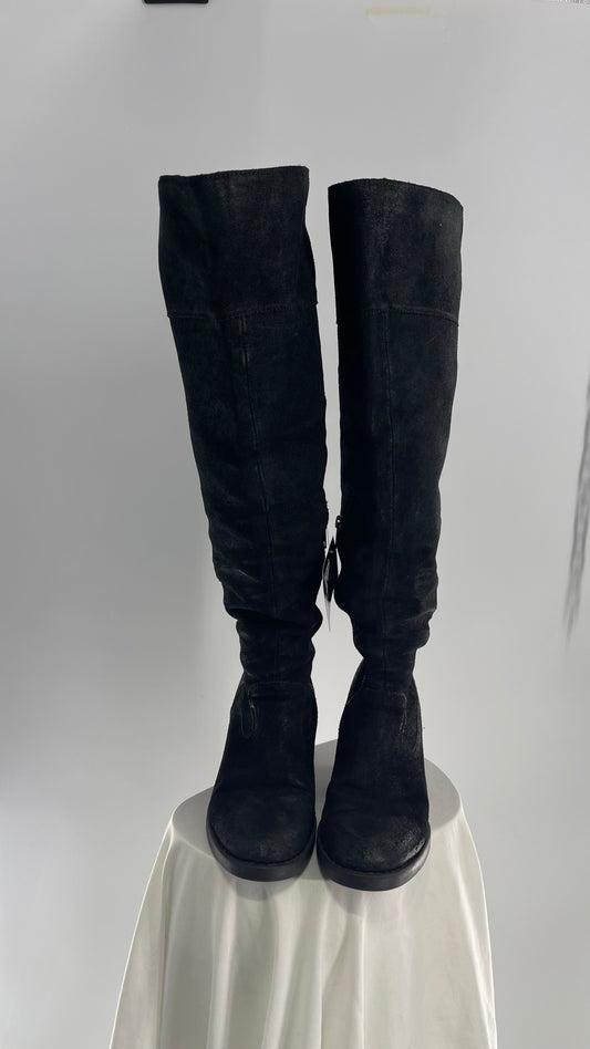 Born Metallic Textured Black Suede Tall Boot (8.5)
