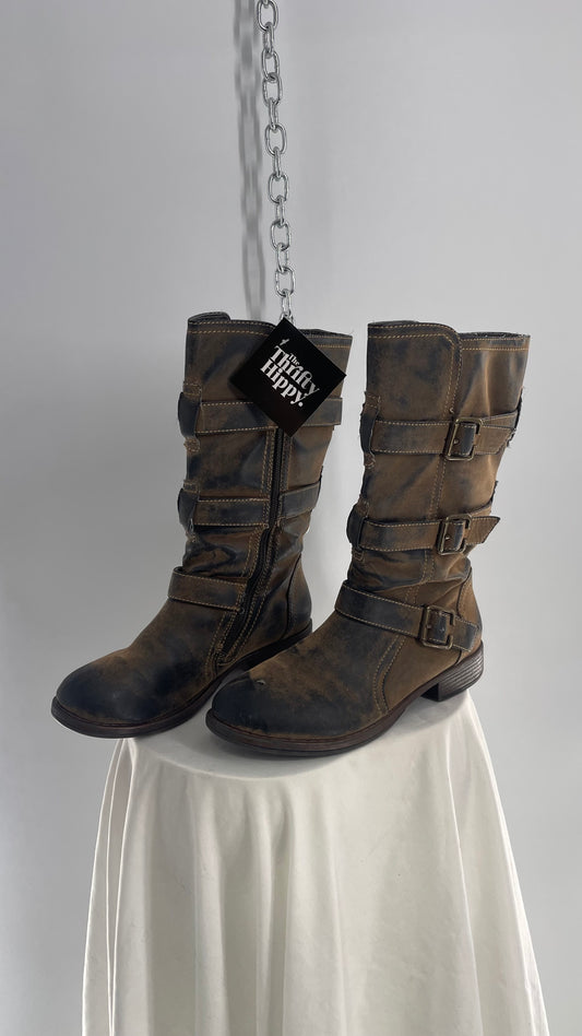 Vintage Mixed Tone Triple Buckle Boots (7.5)