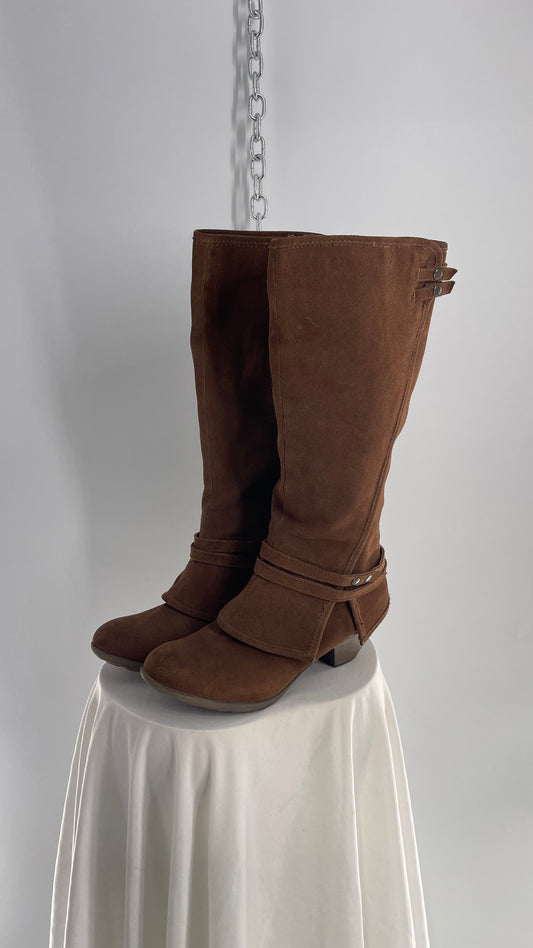 Crown Vintage Suede Leather Fold Over Round Toe Tall Boot (10)