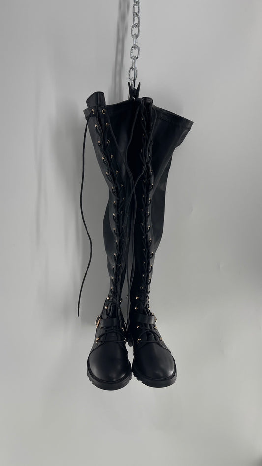Shoedazzle Black Tall Boots with Gold Hardware (7)