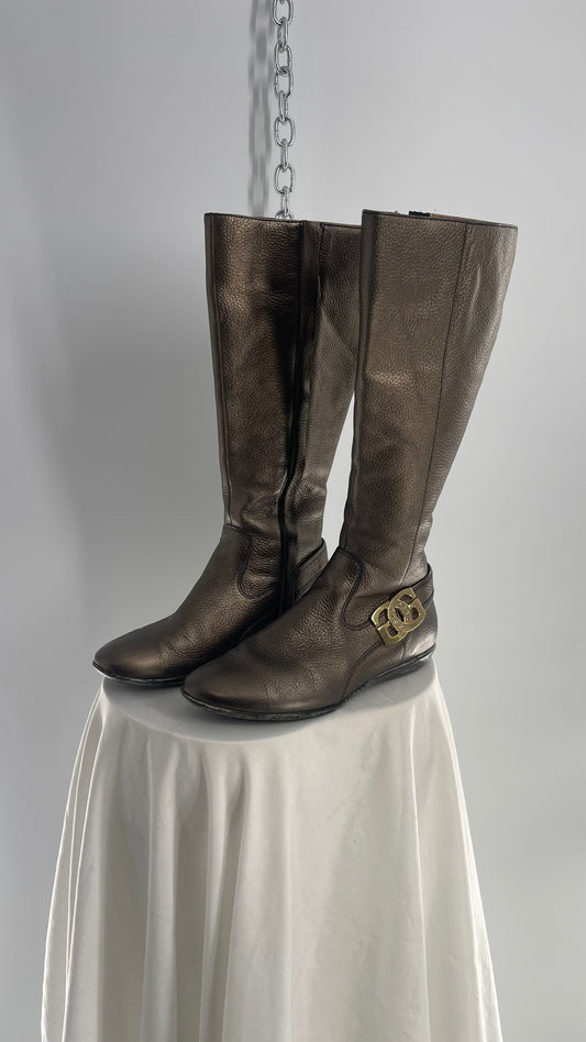 Vintage GUESS Metallic Bronze/Pewter Silver Leather Boots with Logo Buckle (36)