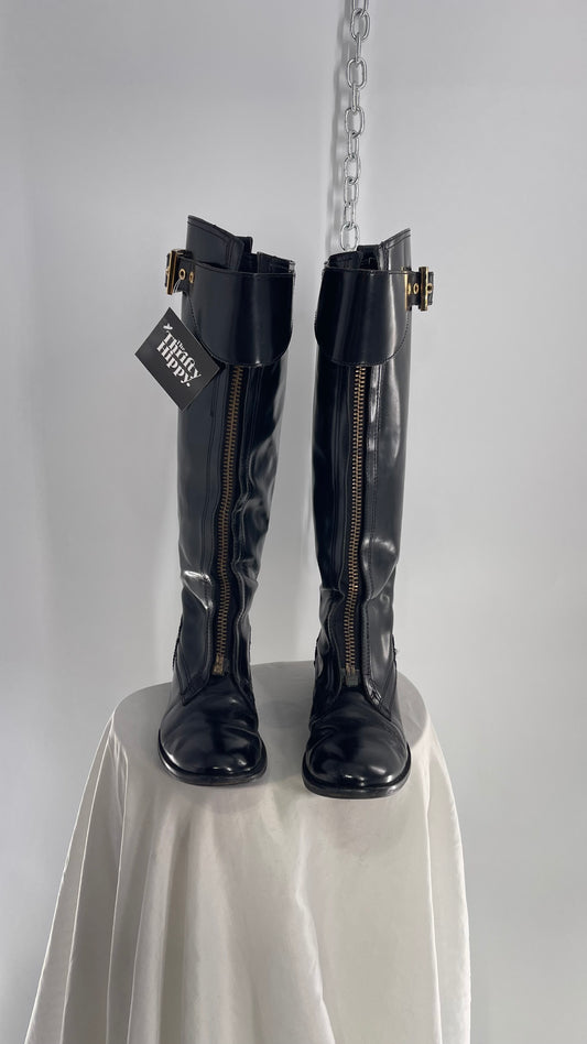 Vintage Tory Burch Patent Leather Bronze Zipper Front Riding Boots (8)