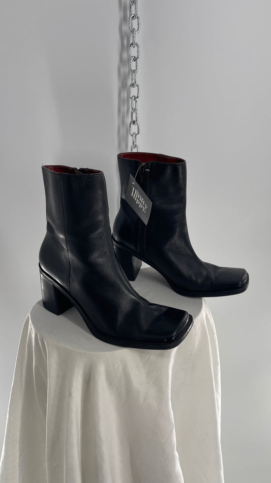 Vintage Nine West Black Leather Square Toe Boot with Block Heel (8)