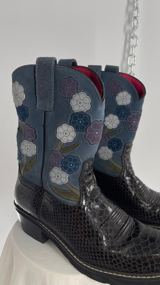 Vintage Ariat Square Toe Boots with Suede Blue Flowers (11)