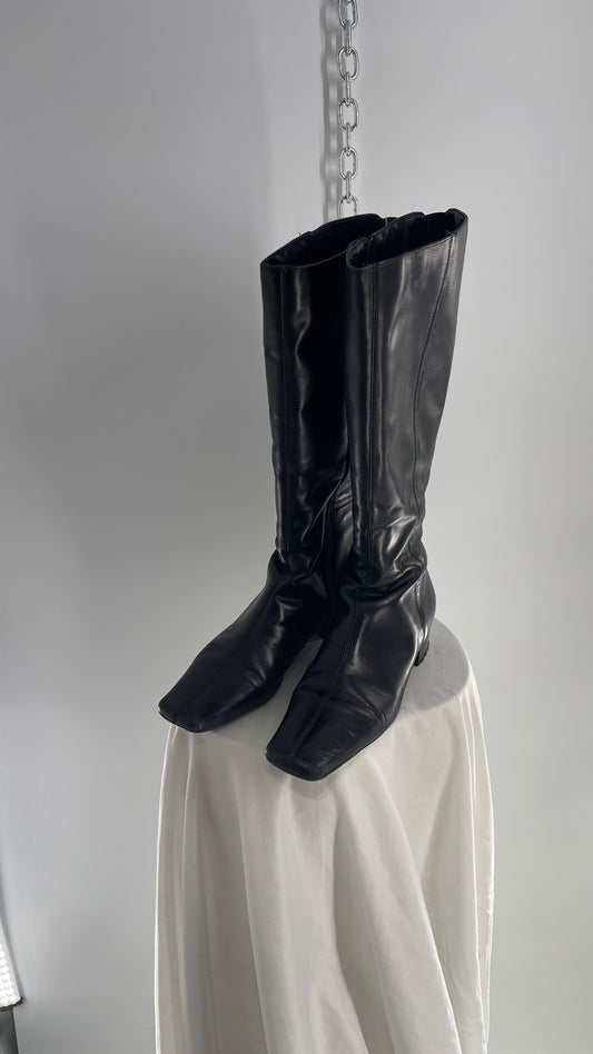 Vintage YKK Black Leather Square Toe Knee High Boot (40)