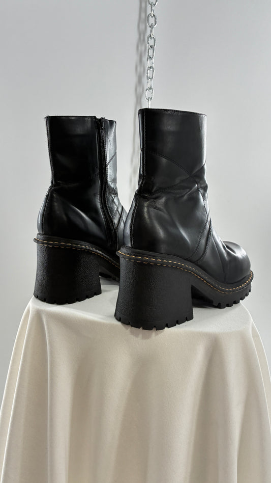 Vintage ROUTE 66 Black Chunky Heel Round Toe Boot (8.5)