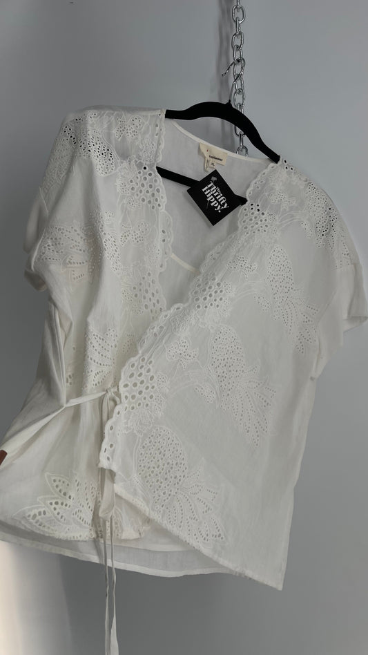 Anthropologie The Korner White Top with Eyelet Lace Scalloped Details (XL)