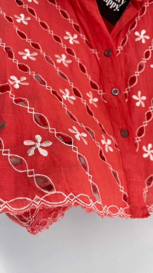 Free People Coral Top with White Eyelet Lace Embroidery (XS)