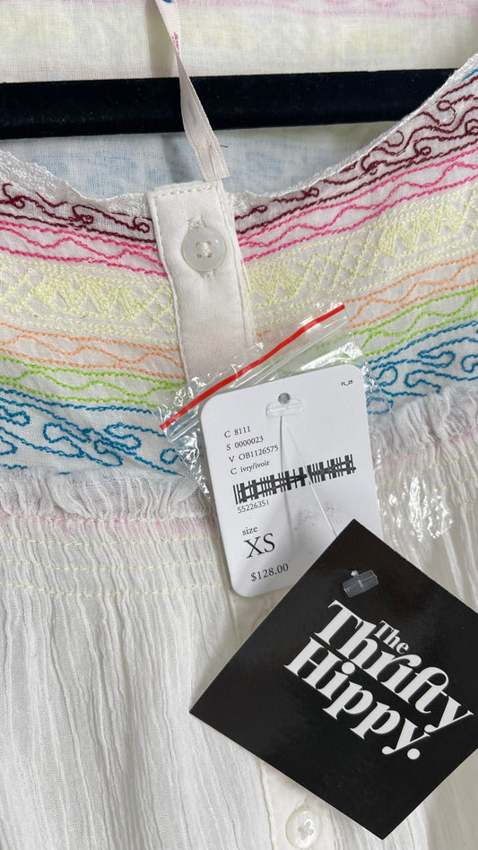 Free People Crimped White Colorful Embroidery with Tags Attached (XS)
