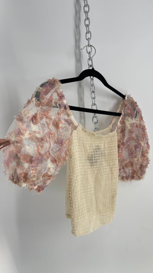 Urban Outfitters Dusty Pink Sheer Puff Sleeve Button Front Blouse (Large)
