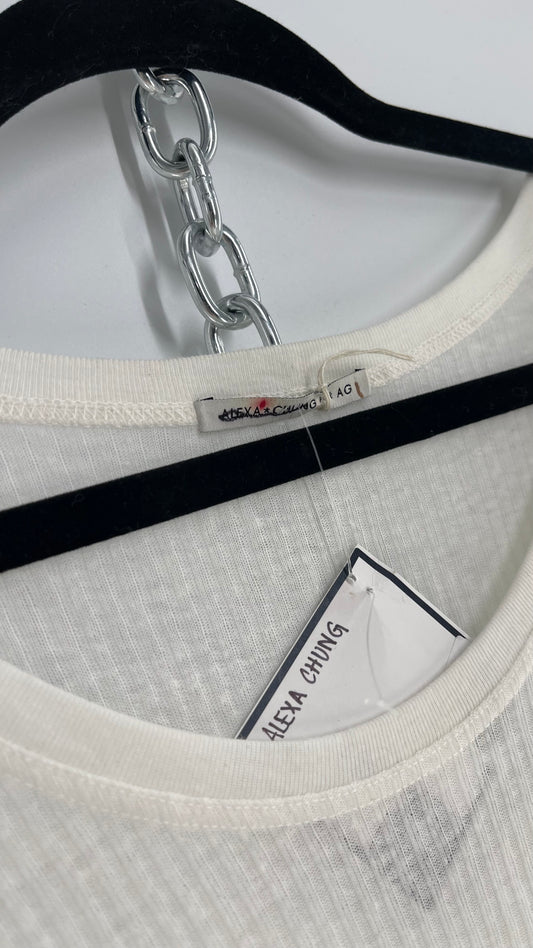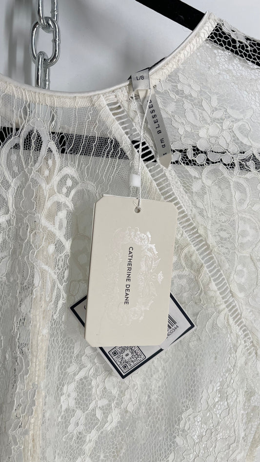 Catherine Deane ITÁLIA White Lace Button Back Short Sleeve Topper Covered in Beading with Tags Attached (Large)