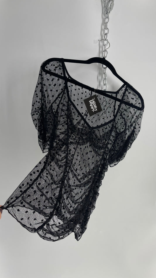 Intimately Free People Black Mesh Polka Dotted Puff Sleeve Blouse (Small)