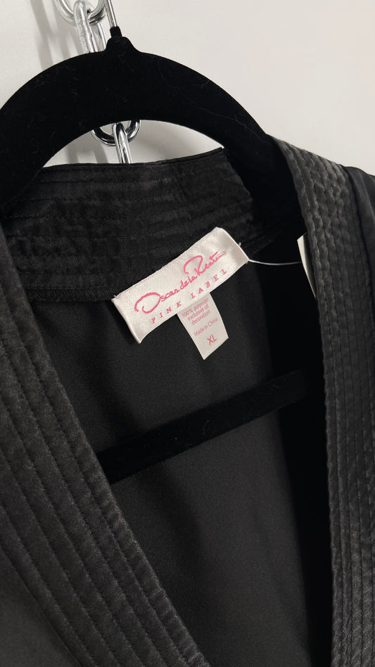 Oscar De La Renta Black Silky Lace Hem, Embroidered Kimono Style Top (XL)