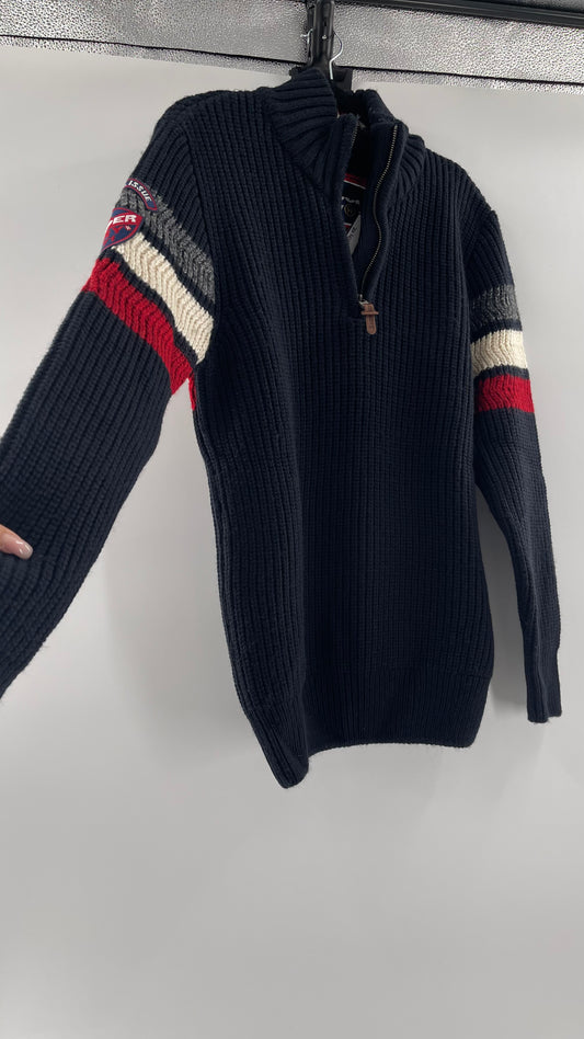 Superdry Navy Thick Knit Ski Dog Quarter Zip Henley (XL)