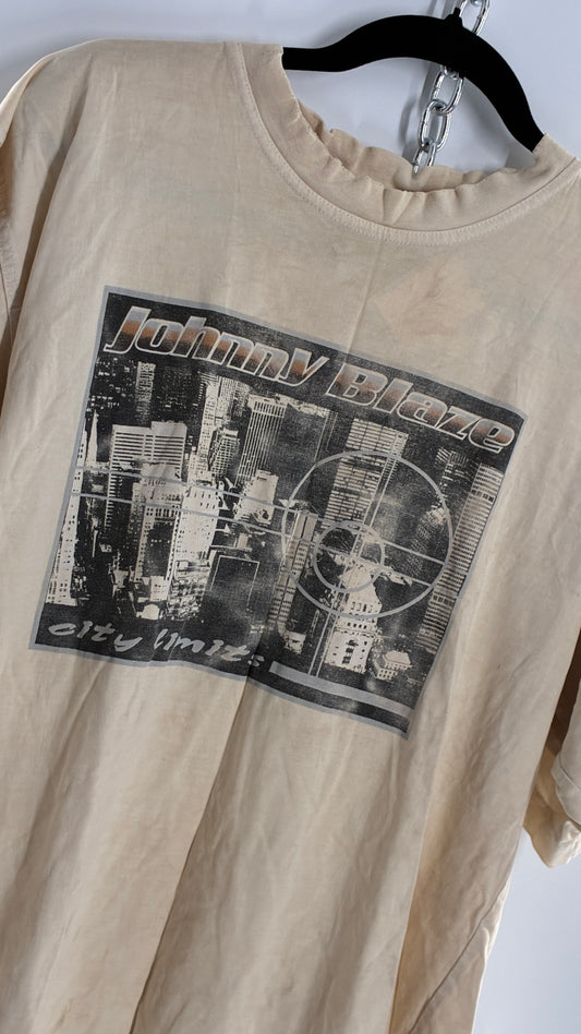Vintage JOHNNY BLAZE Distressed, Rugged Graphic T Shirt (L)