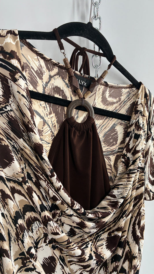 Vintage ALYX Brown Drape Front Top with Beaded Halter Peek Through Detail (Large)