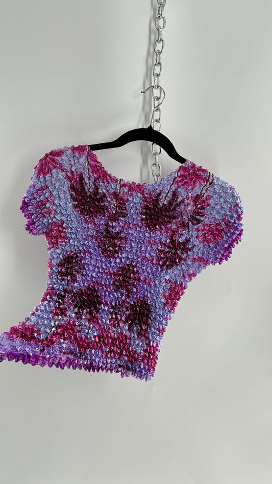 Vintage Tropical Palms Purple Popcorn Top (One Size)