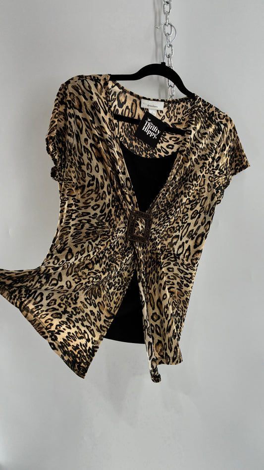 Vintage DRESS BARN Cheetah Patterned Metallic Sheen Belted Blouse with Buckle Detail (Large)
