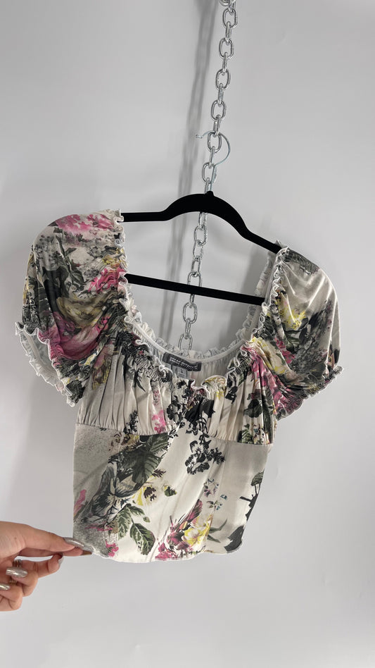 Urban Outfitters Slinky Vintage Inspired Graphic Florals and Milkmaid Style Top (Large)