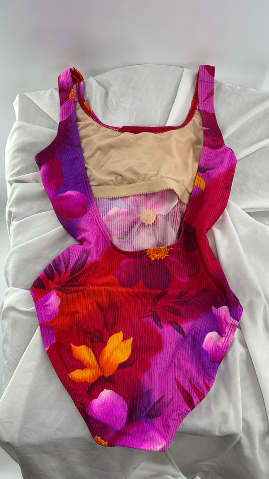 Vintage CATALINA Hibiscus Tropical Florals Open Back Swimsuit (Medium)
