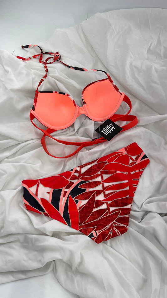 AERIE Swim Set with Palm Leave Patterns (36B/M)