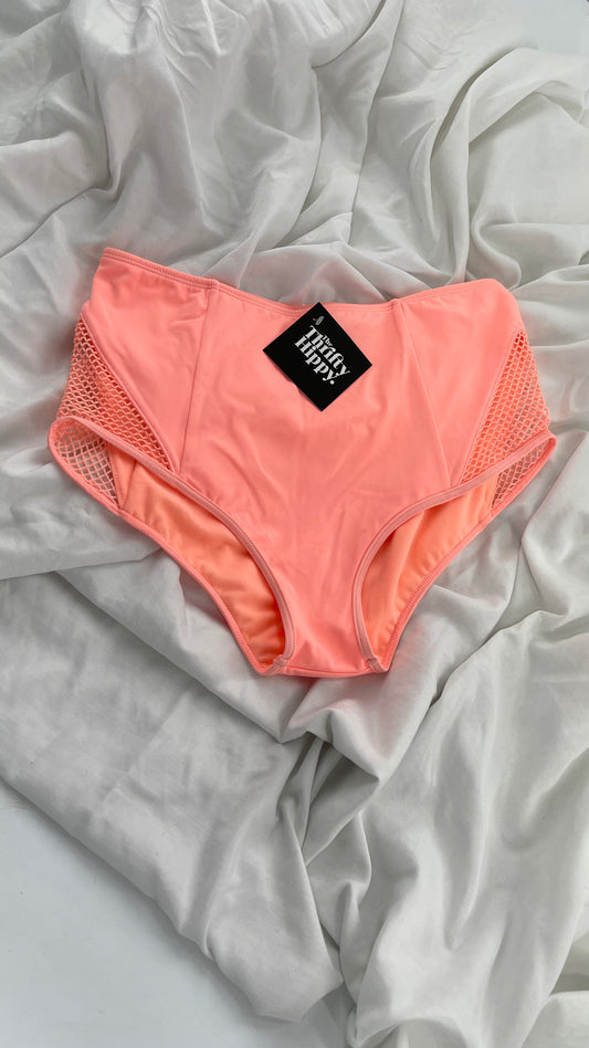 Pacsun LA Hearts Neon Pink Mid Rise Swim Bottoms with Mesh Sides (Medium)