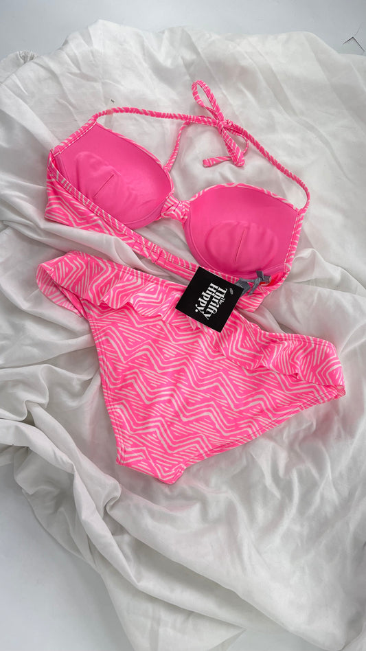 AERIE Pink Swim Set with Padded Underwire Top and Ruffled Bottoms (34C/M)